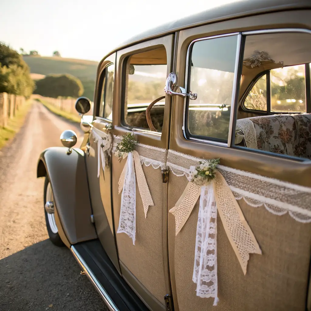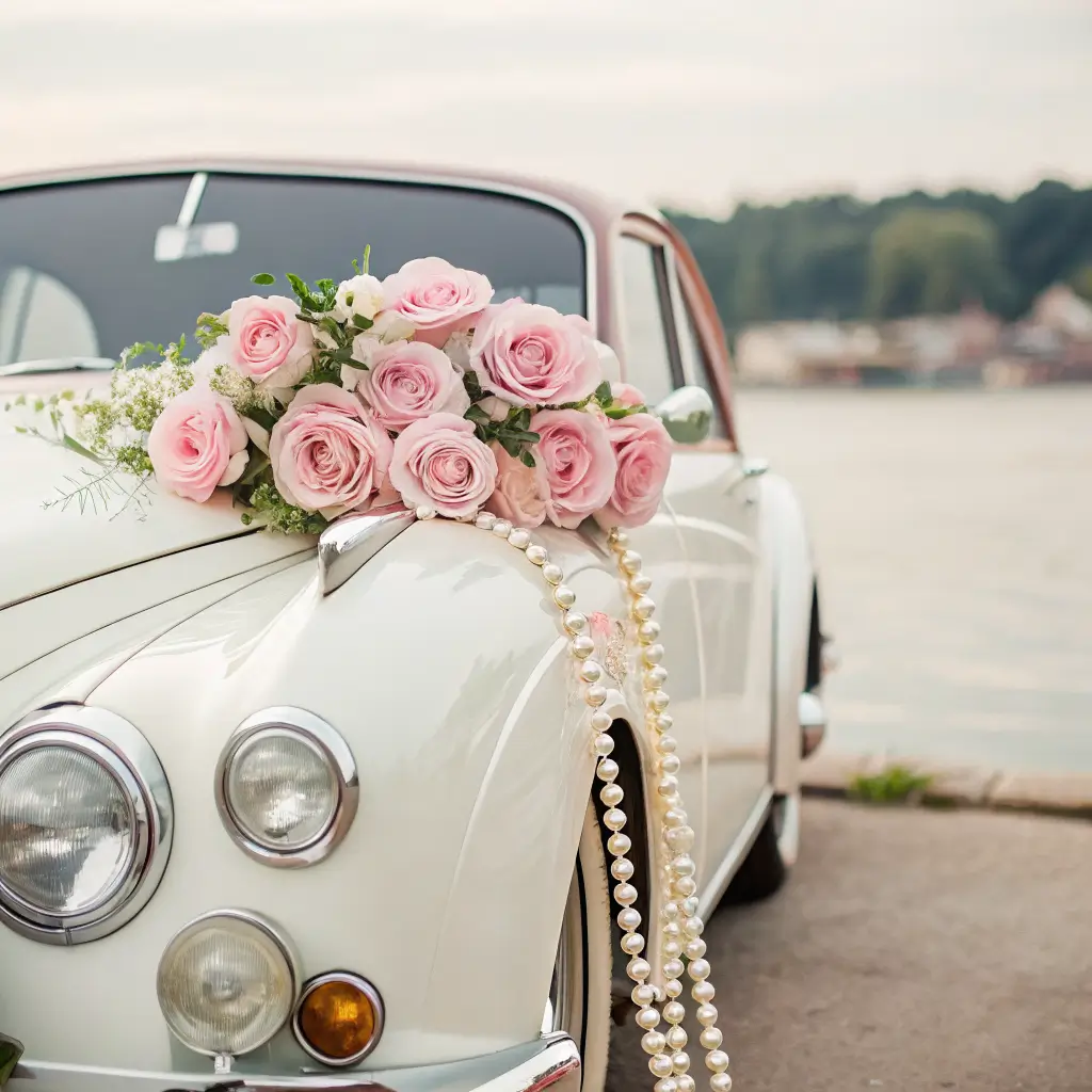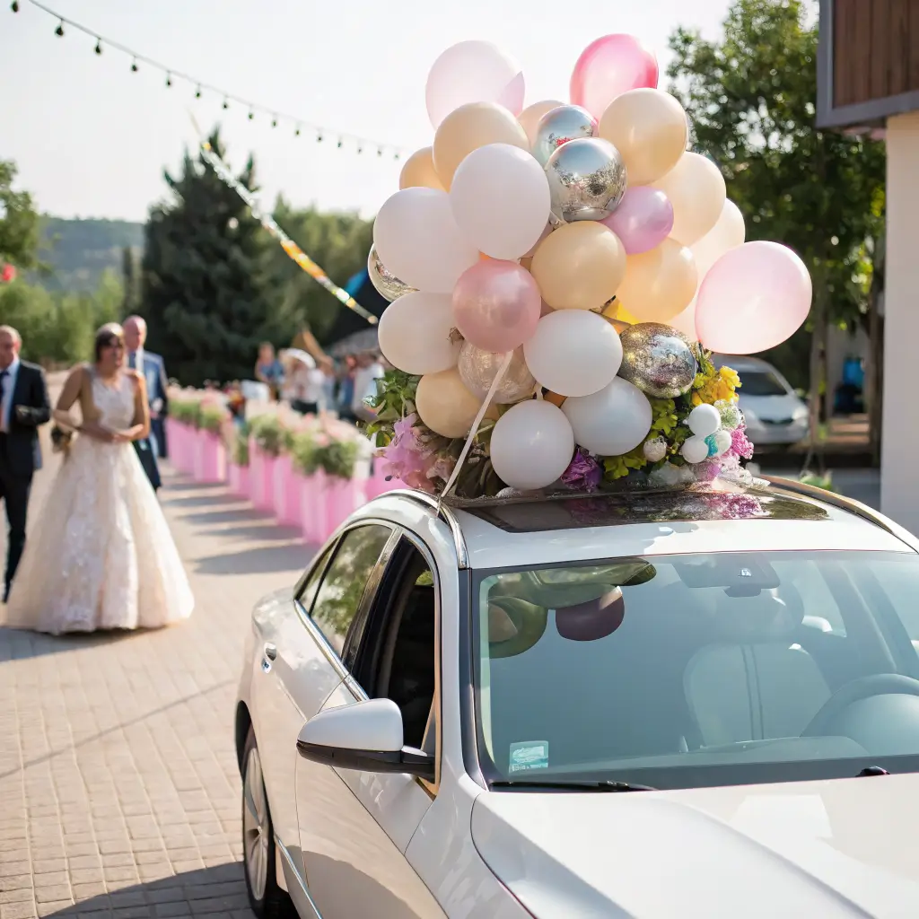 Choosing the right car decor really comes down to your personal style and wedding theme. Are you classic and elegant? Go with white florals or satin bows. Feeling whimsical and fun? Balloons or fairy lights might be your jam. Want something completely unique? DIY paper flowers could be perfect.