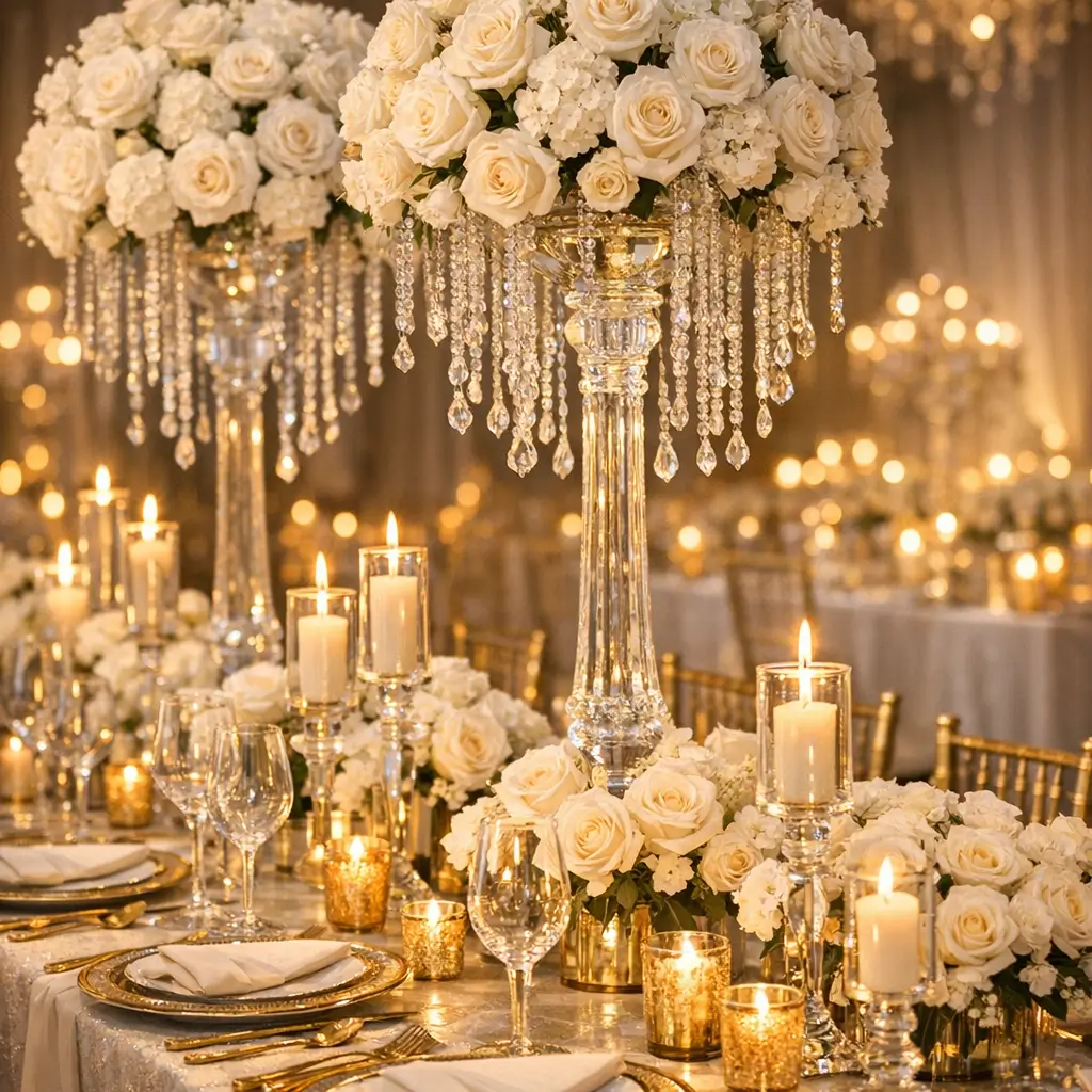 Crystal centerpieces work brilliantly in ballrooms, historic venues, or anywhere with high ceilings. They reflect light like crazy, creating this dreamy, sparkly atmosphere that makes everyone look good in photos (and isn’t that what we all want?).
