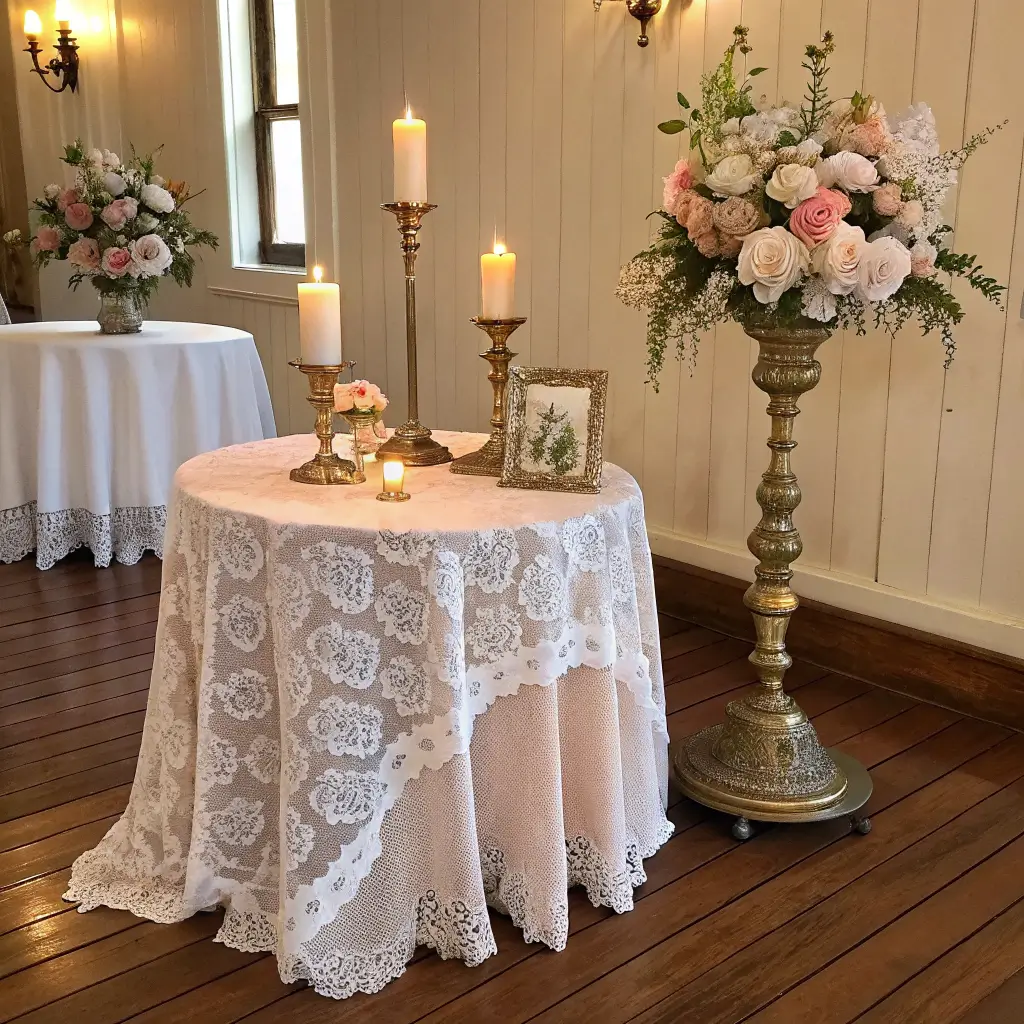 I’ve always been a sucker for this look. There’s something about lace overlays and flickering candles that makes everyone look like they’re in a romantic period drama. Plus, candlelight is universally flattering – your photographer will thank you.