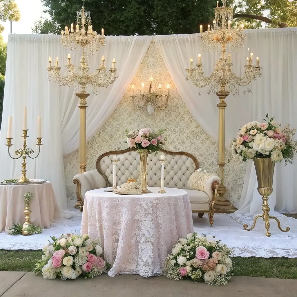 - Chandelier or candelabra centerpieces