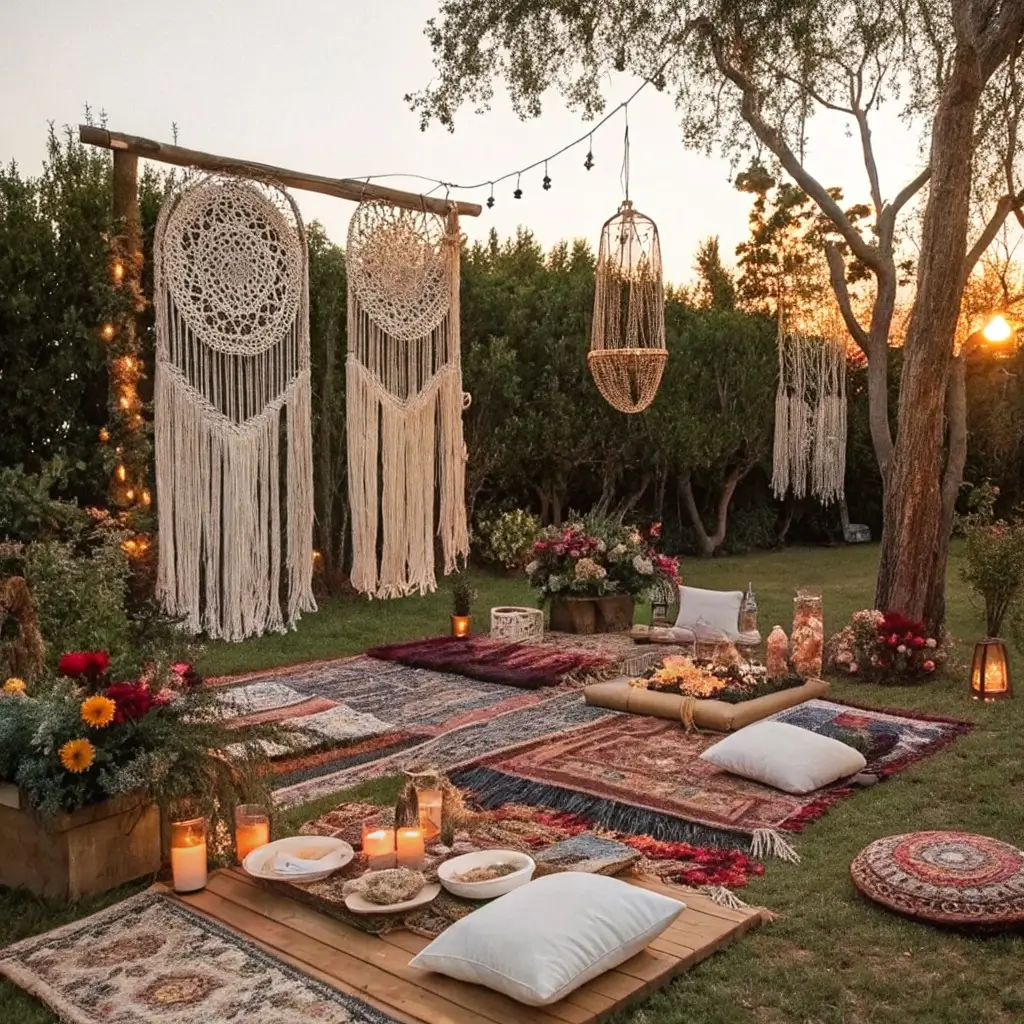 - Macramé backdrops for ceremony or photo booth