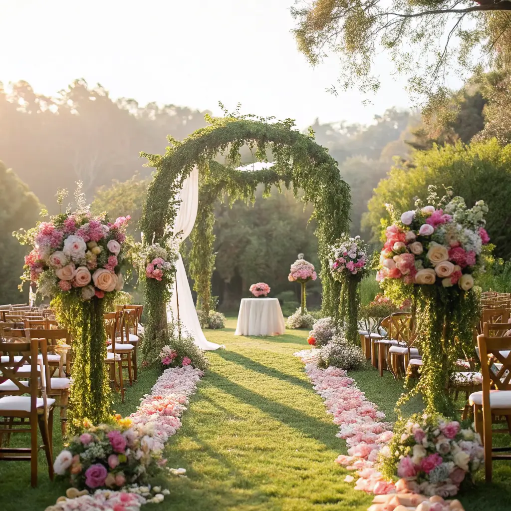 - Floral arches that frame key areas