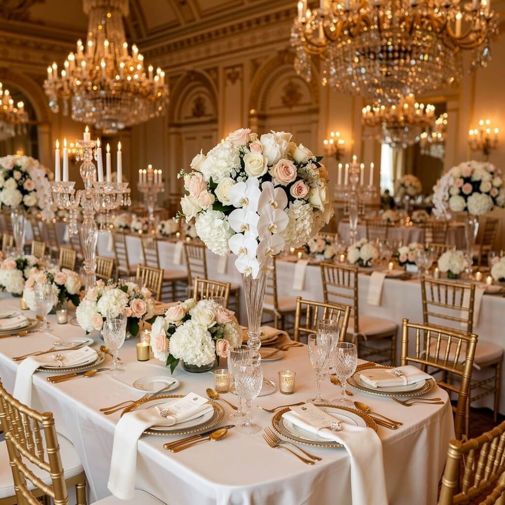 IMO, this style works best in elegant venues – ballrooms, historic mansions, or upscale hotels. The architecture should complement the luxury vibe you’re creating.