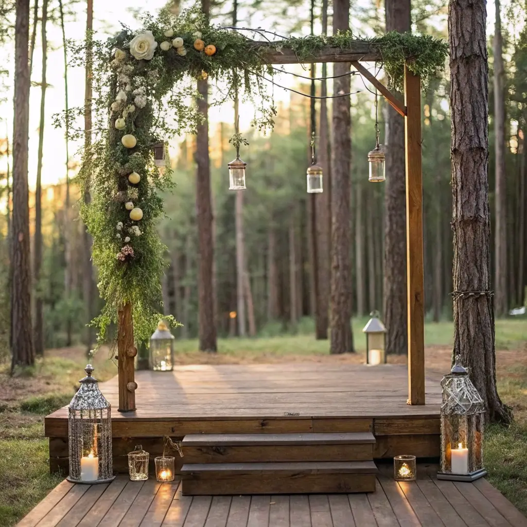 I attended a wedding last fall where they built this incredible hexagonal wooden frame. The contrast between the rough wood and delicate fairy lights wrapped around it created pure magic. It proved you don’t need flowers everywhere to make a statement.