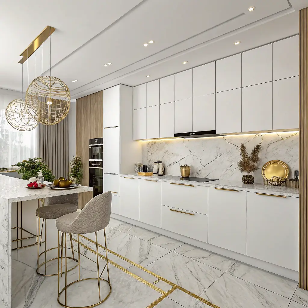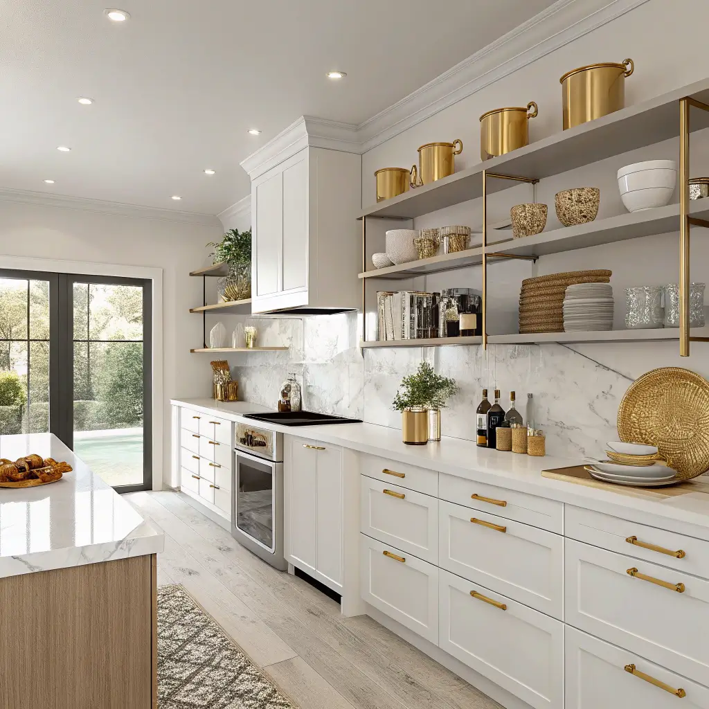 Contemporary White and Gold Kitchen Decor