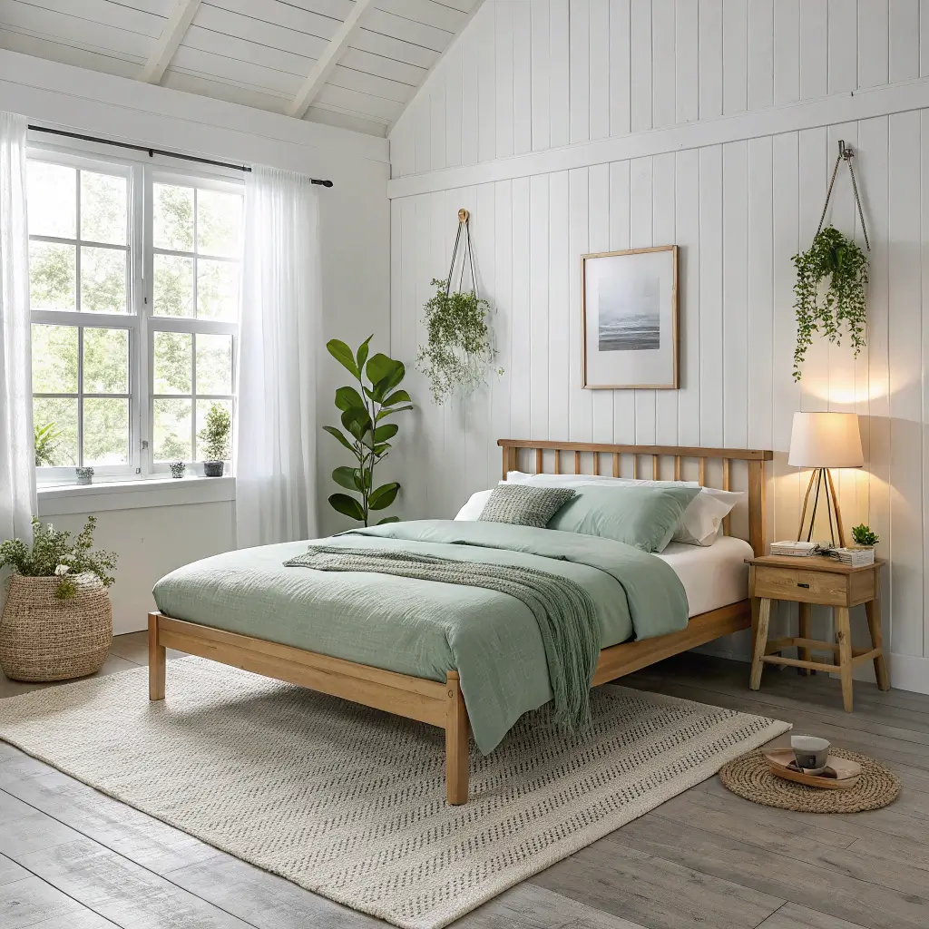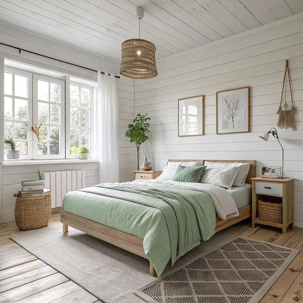 4. Scandinavian White & Sage Calm Bedroom