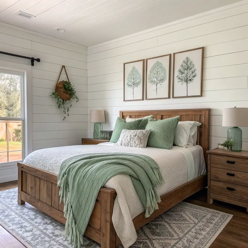2. Cozy Farmhouse White & Sage Retreat