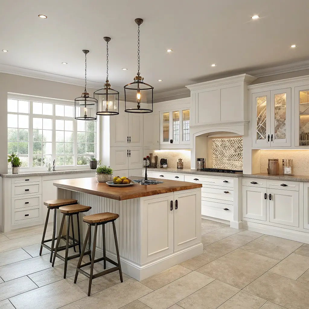 I recently saw a kitchen with white cabinets featuring subtle wood inlays – talk about unexpected elegance! Crown molding in natural wood against white cabinets adds that traditional touch without feeling stuffy. And please, invest in good lighting. Under-cabinet LEDs highlighting beautiful wood countertops? That’s the stuff of dreams.