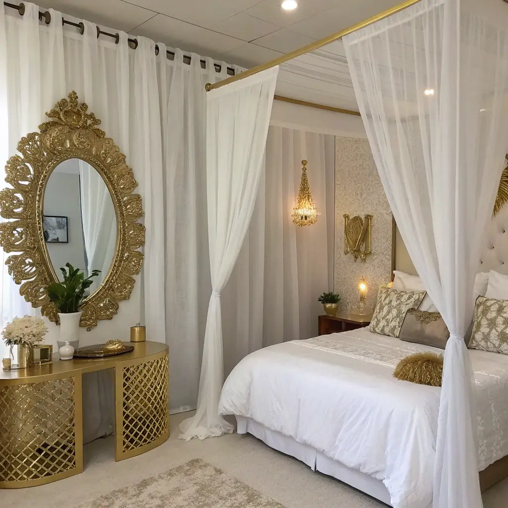 Sometimes you just want to feel fancy, you know? The white and gold bedroom combination hits different when you’re going for pure elegance. After attending a wedding at this ridiculous estate with white and gold everything, I came home and immediately started planning my bedroom makeover.