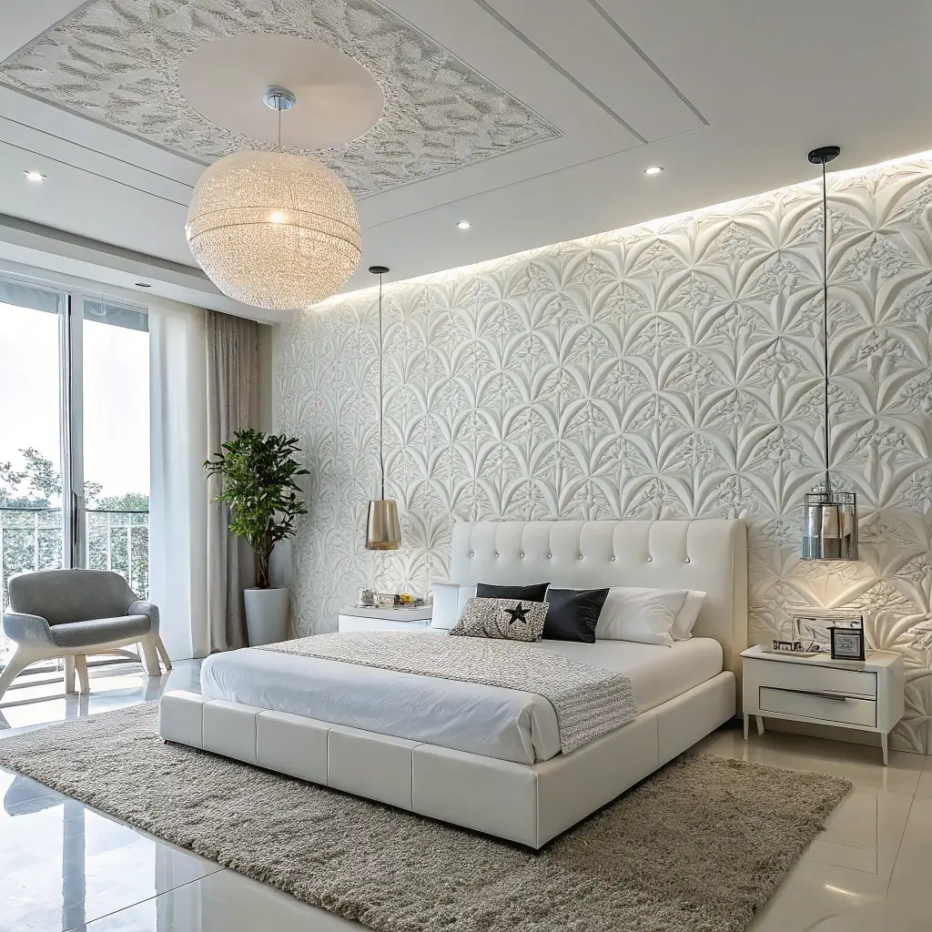 Think beyond flat paint. Textured wallpapers in white, 3D wall panels, or even a white painted brick wall add incredible depth to your bedroom. My current favorite? A white grasscloth wallpaper behind my bed that adds subtle texture without competing with my bedding. It photographs beautifully and makes the room feel expensive without the designer price tag.