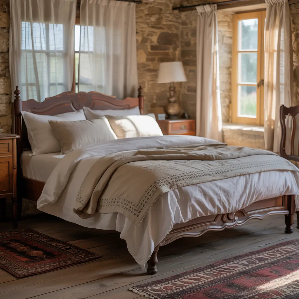 My weekend cottage has these café-style white curtains with delicate crochet trim, and they perfectly capture that rustic charm. Every morning feels like waking up in a storybook.