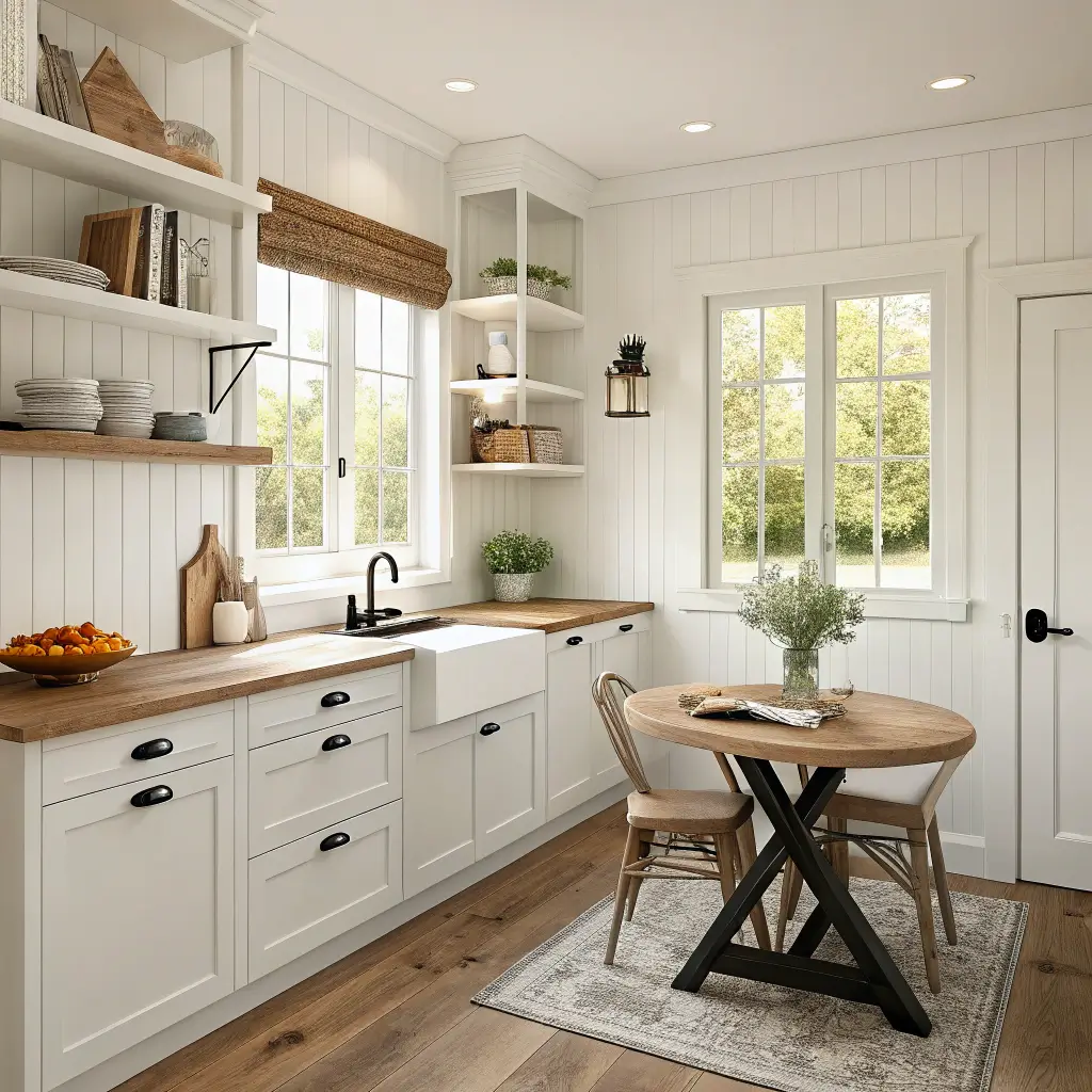 White becomes your best friend in small spaces. It reflects light, creates the illusion of space, and provides the perfect canvas for farmhouse accents. I helped my sister transform her tiny apartment kitchen, and the white color scheme literally made it feel twice as big.