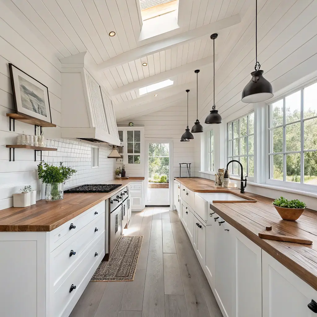 Elegant White Farmhouse Kitchen with Wooden Accents