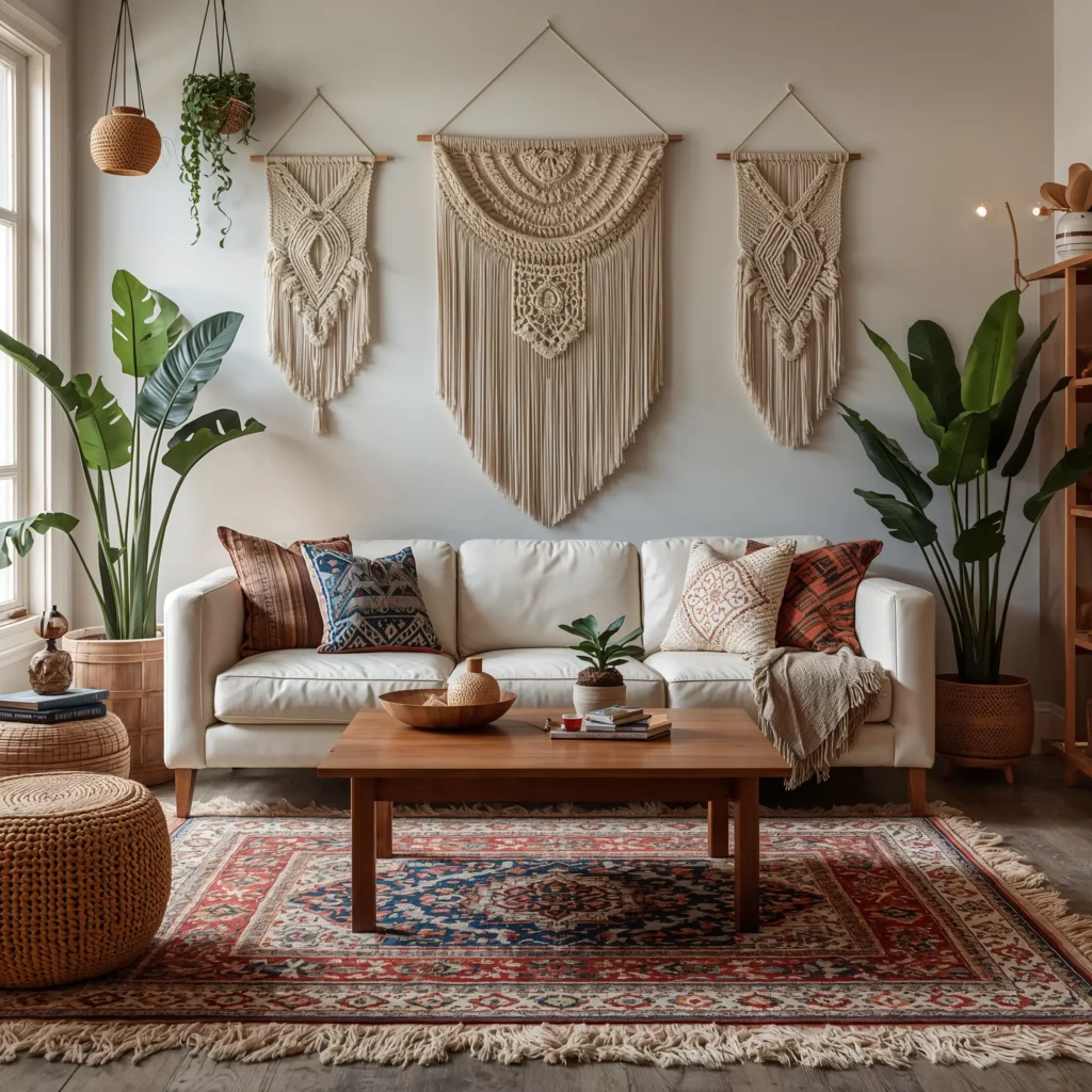 Start with textured throw pillows – think macramé, tassels, or embroidered patterns. Layer in some vintage kilim rugs. Add plenty of plants (seriously, you can’t have too many in a boho space).