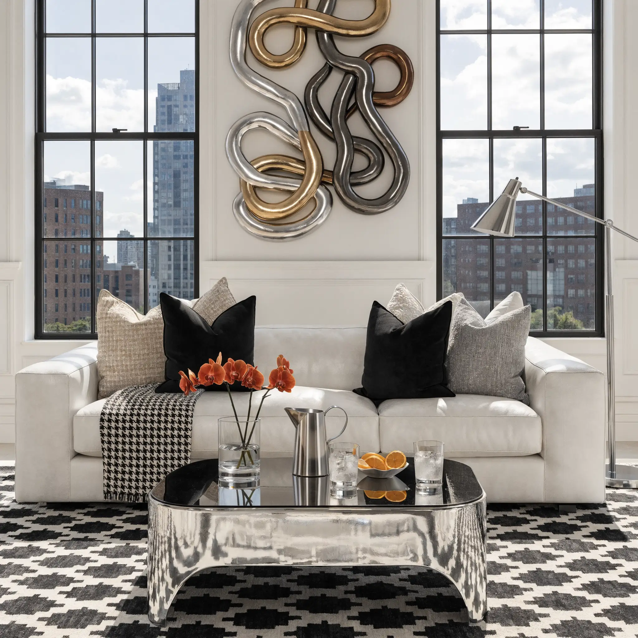 Picture this: your sleek white leather sofa against a charcoal accent wall. Add geometric patterns through pillows or artwork. Throw in some acrylic or glass furniture pieces. The result? Pure modern sophistication.