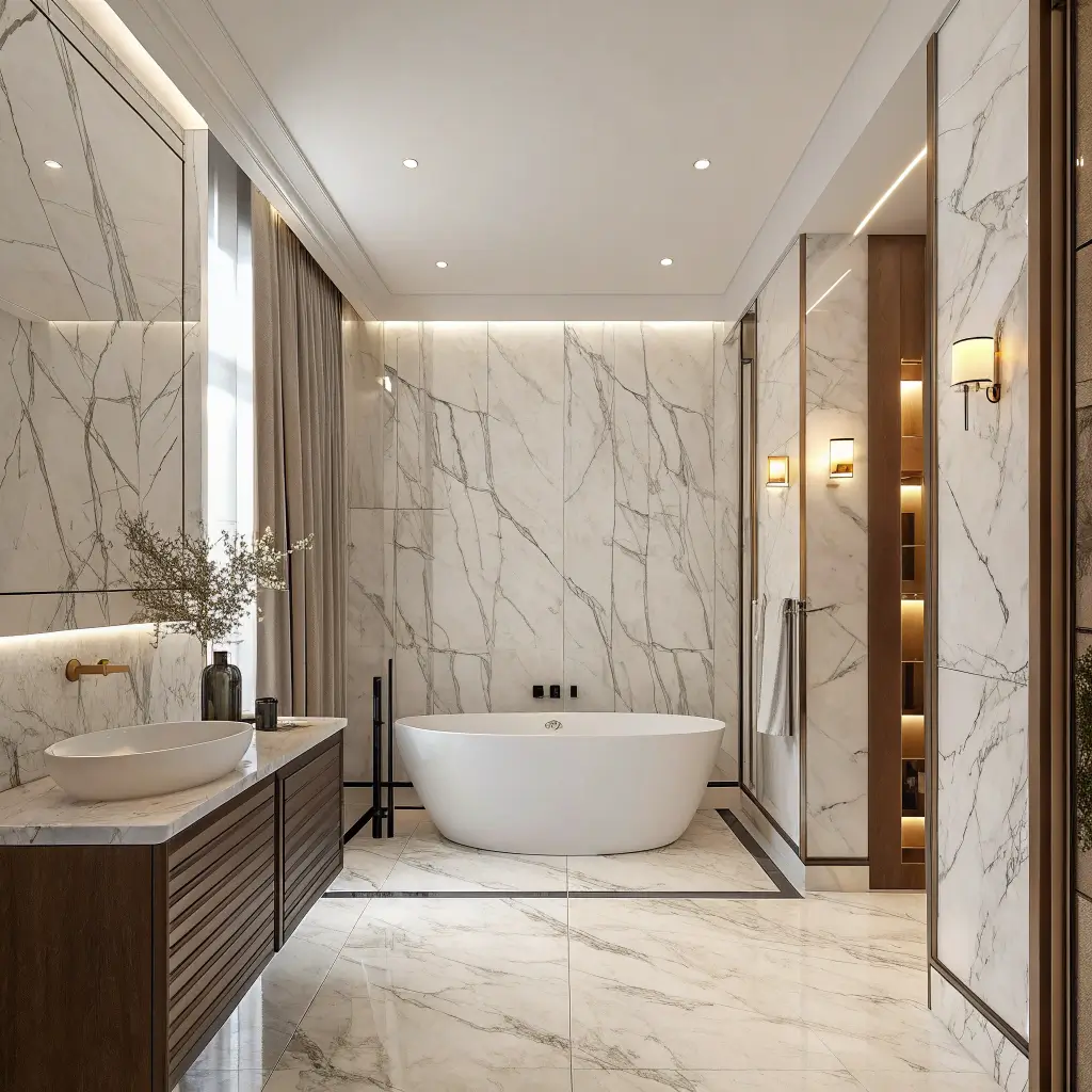 I recently helped my sister design her bathroom with massive marble slabs on the walls. The effect? Mind-blowing. The veining flows continuously across the surface, creating this gorgeous, organic artwork that changes depending on how light hits it.