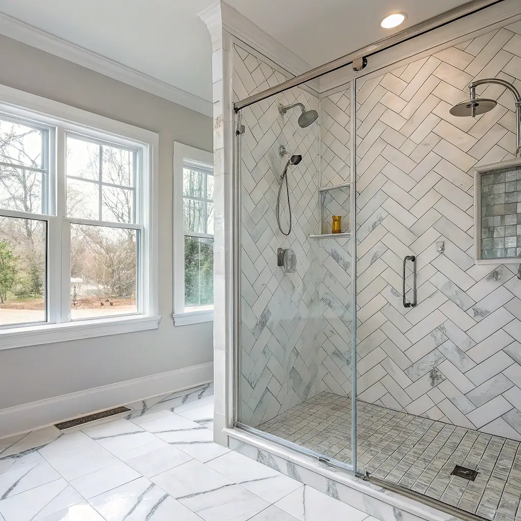 I installed a herringbone accent wall in my shower last summer, and FYI, it’s become the bathroom’s main conversation starter. The pattern adds movement and sophistication without overwhelming the space. Plus, it works with both small mosaic tiles and larger formats.