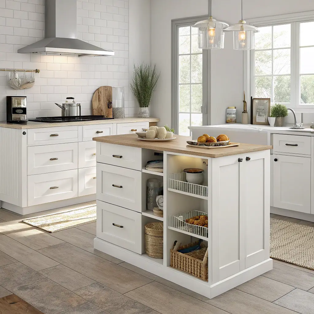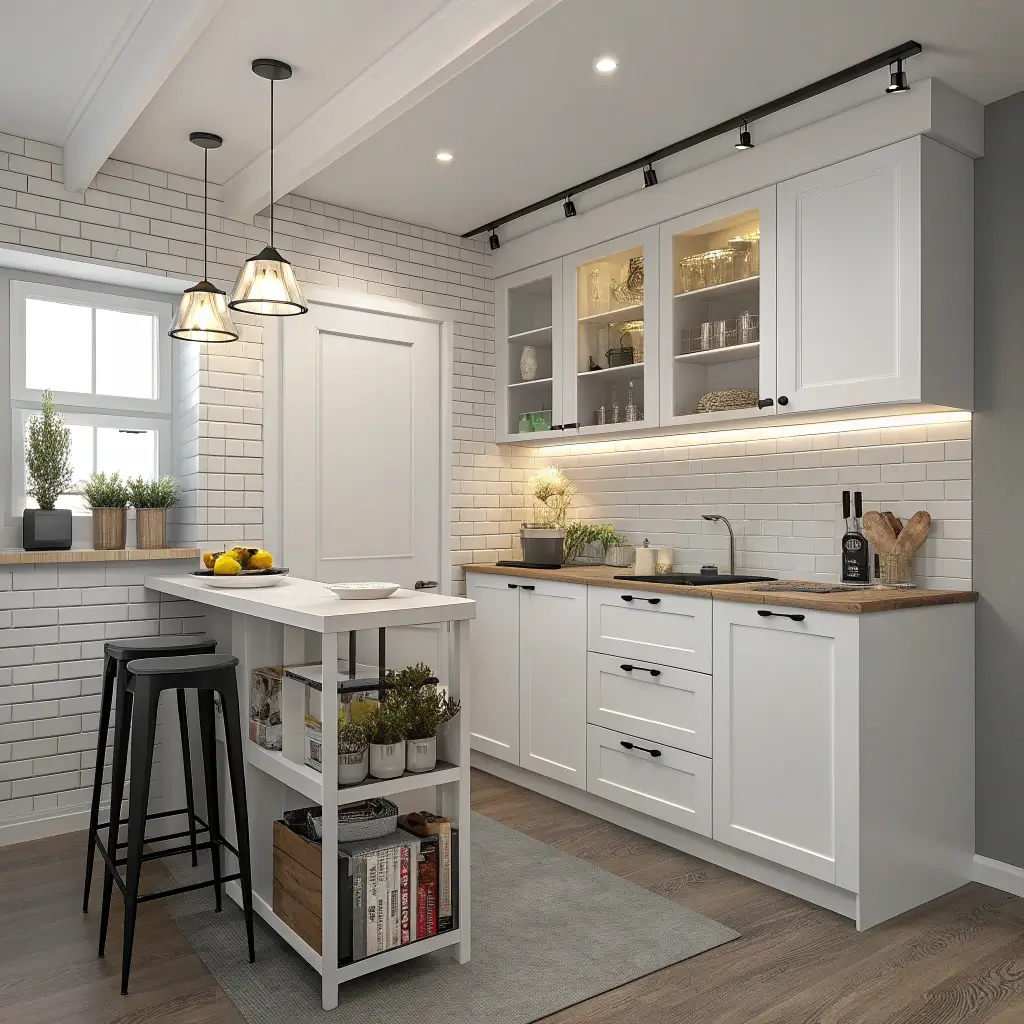 Every inch counts in compact kitchens. White shaker cabinets help visually, but you need clever solutions for actual storage. Custom inserts, pull-out systems, and vertical organizers transform standard cabinets into storage powerhouses.