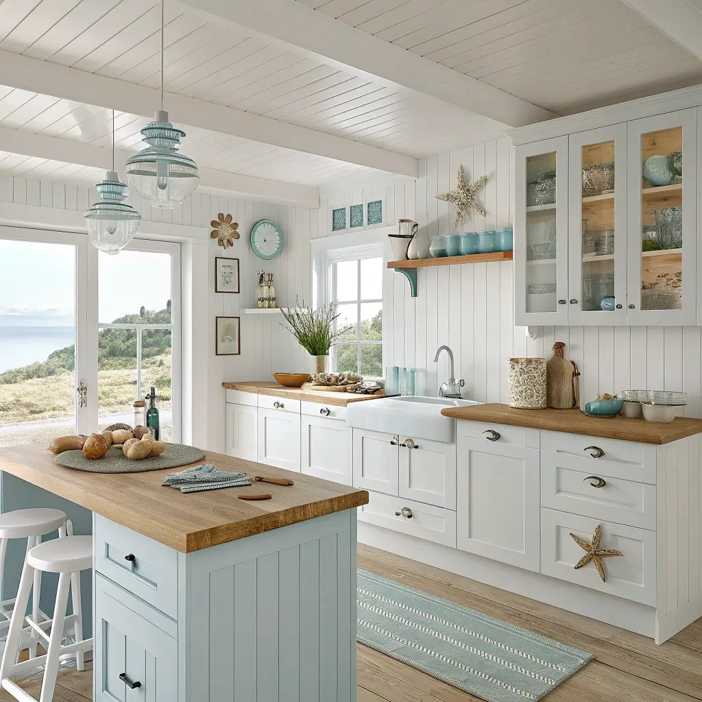 Coastal design goes beyond throwing up some seashells (please don’t). It’s about capturing that easy, sun-washed feeling through color and texture. Your white shaker cabinets provide the perfect bright foundation.