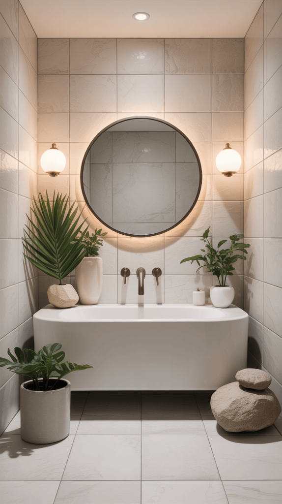 - Artwork: A large, colorful piece of art above the vanity instantly injects personality.