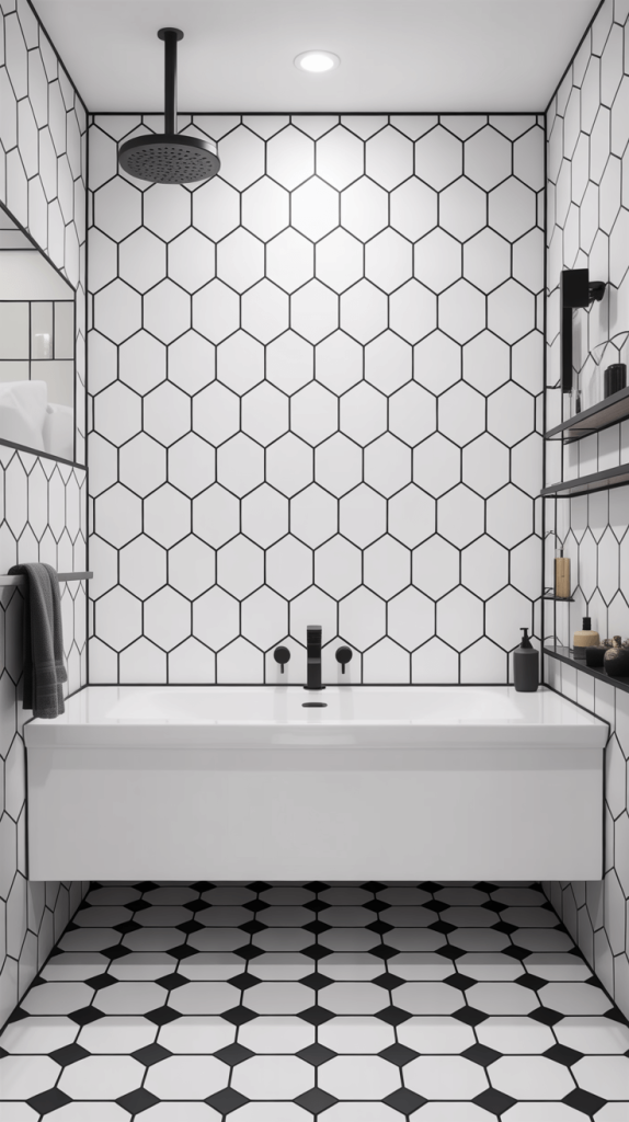 - Hexagons: A classic that feels both vintage and modern. Perfect for floors or shower niches.