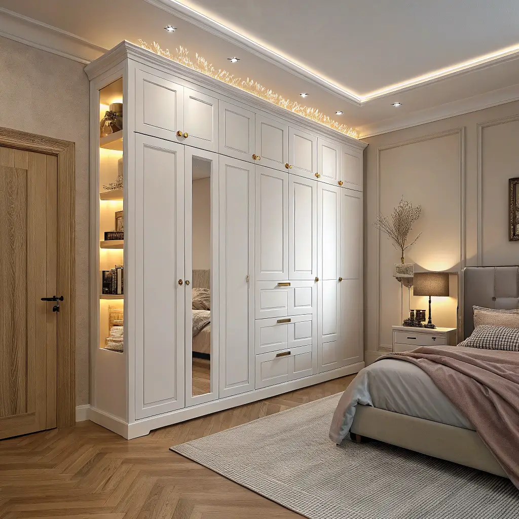 7. White Wardrobe with Built-in Lighting