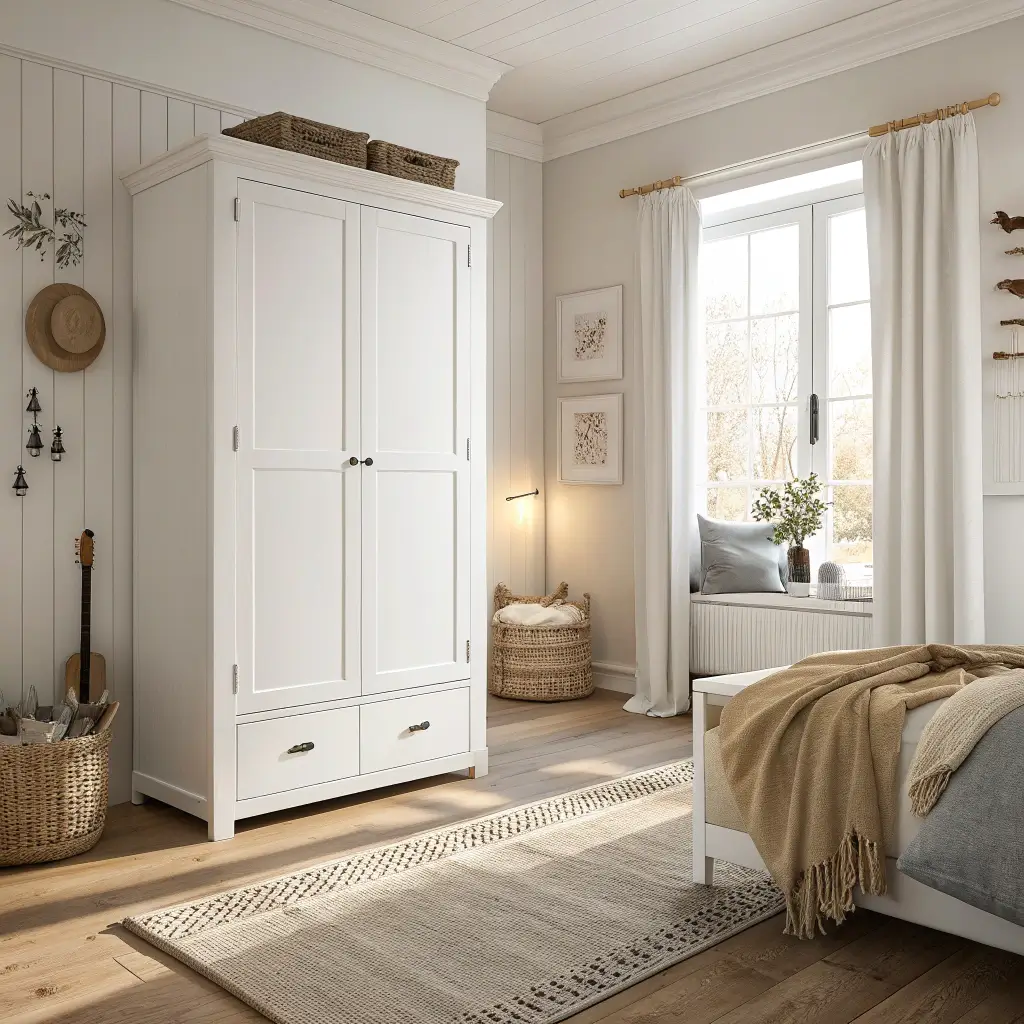 What I love about rustic white wardrobes? They tell a story. Whether it’s actually vintage or just made to look that way, there’s something comforting about furniture that looks like it’s lived a life.