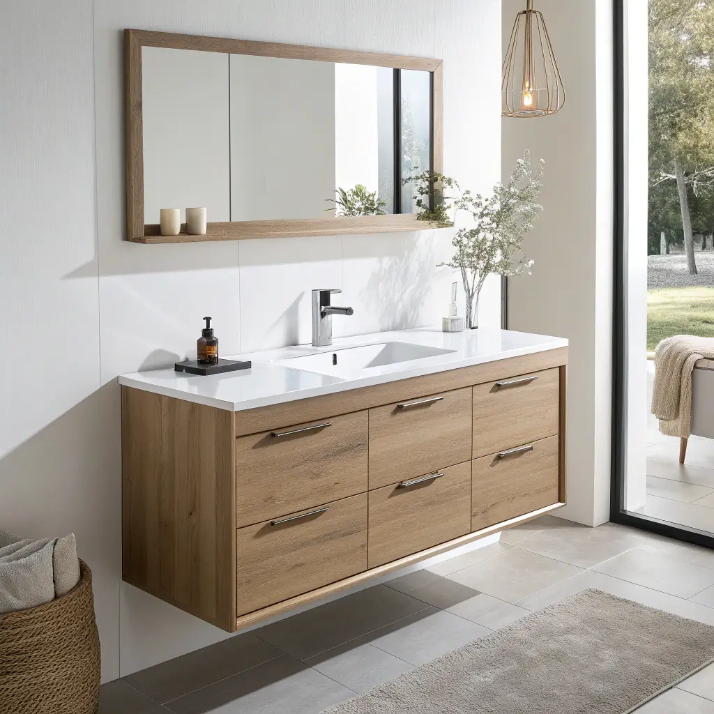 I learned this the hard way in my first apartment. I crammed in this massive vanity thinking I needed the storage, but it made the whole room feel claustrophobic. When I switched to a sleek 24-inch wooden wall-mount, suddenly I could actually move around in there.