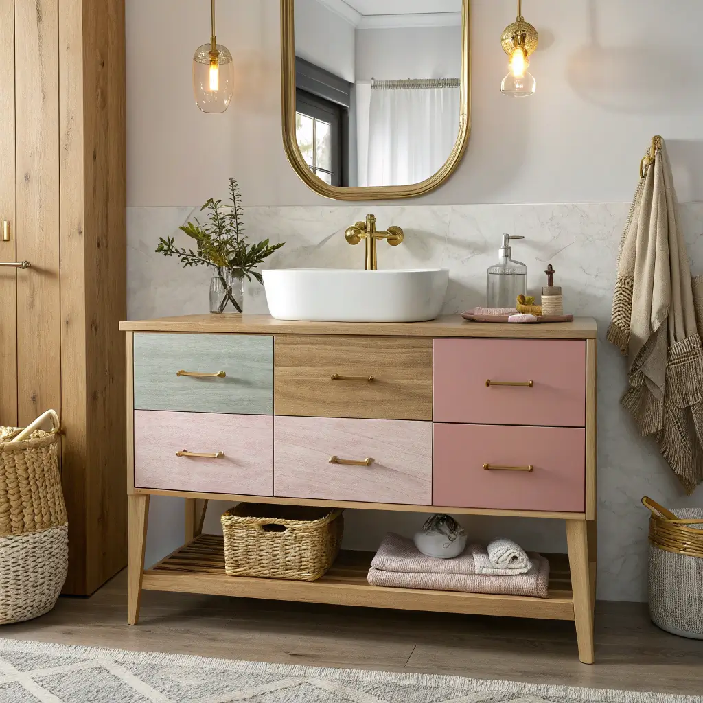 Two-Tone Wood Vanity with Painted Accents