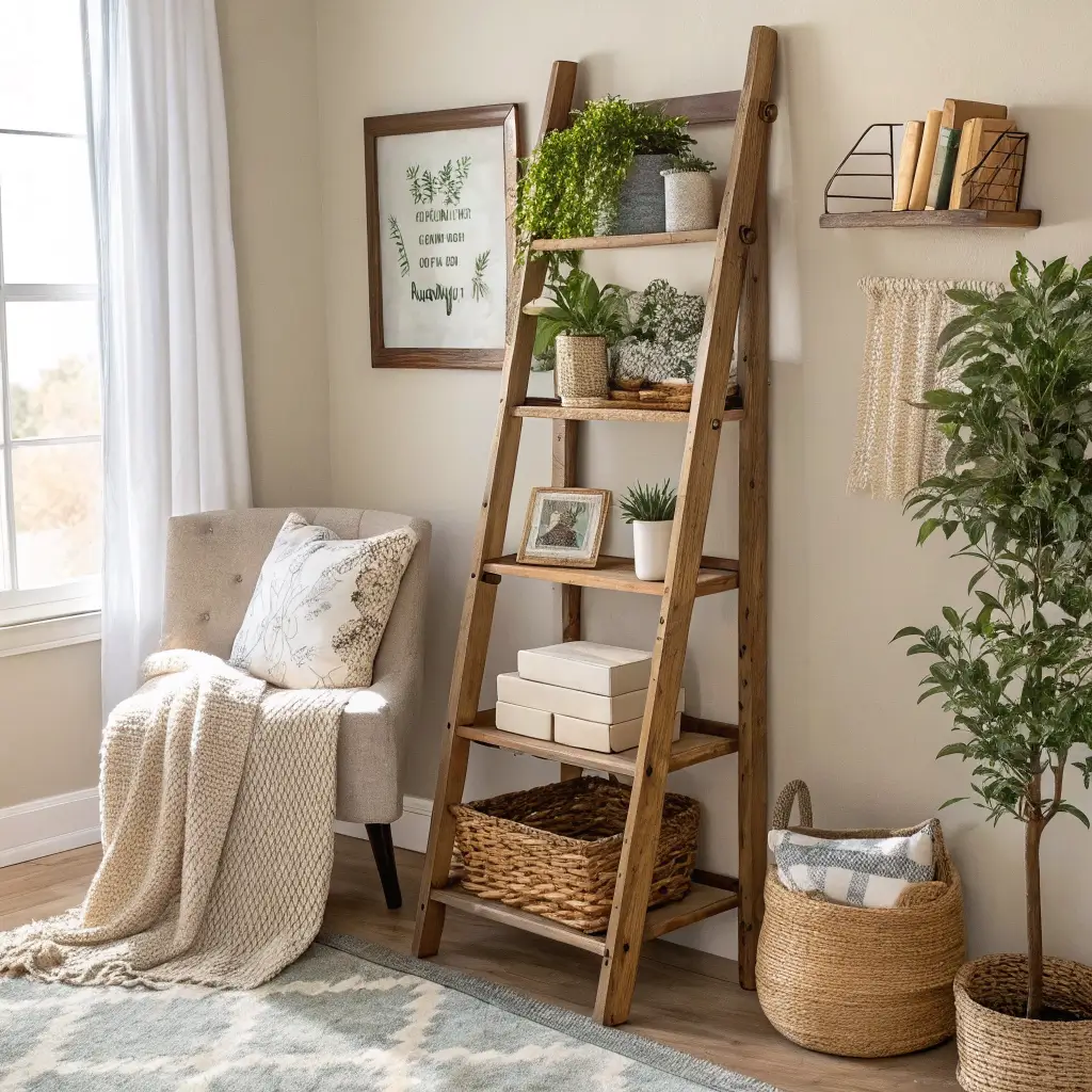 Ladder shelves lean against the wall like they’re too cool to commit. And honestly? They pull it off. These A-frame beauties offer storage without permanent installation â€“ perfect for renters or commitment-phobes.