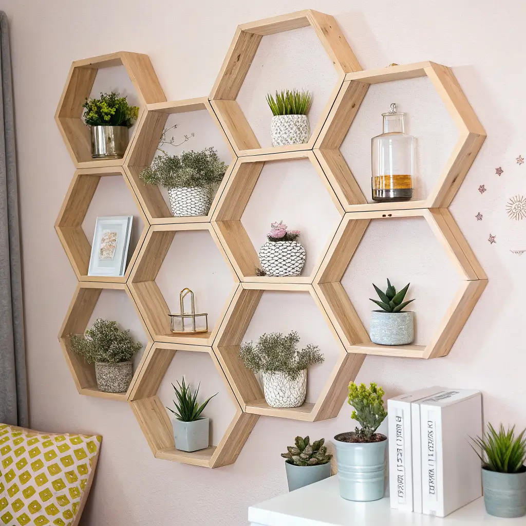 Who says shelves need to be boring rectangles? Geometric shelving turns storage into art. Think hexagons, triangles, and shapes that would make your high school geometry teacher proud.