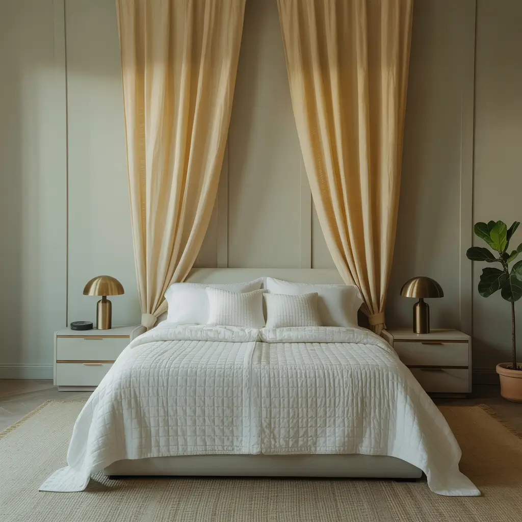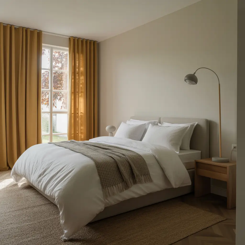 This approach lets you change bedding seasonally without replacing curtains. Your wallet thanks you, and your bedroom stays fresh.